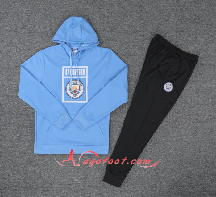 Ensemble Capuche Survetement Foot Manchester City Bleu 19/20