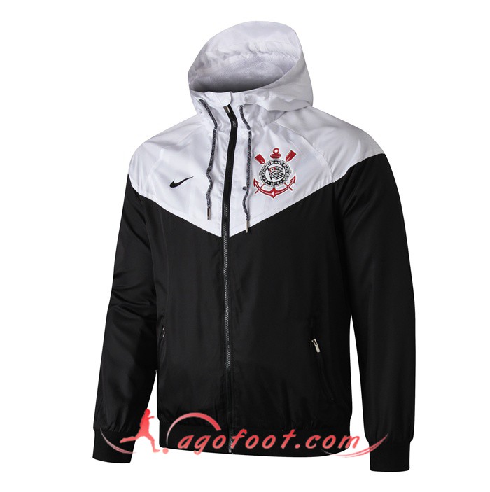 Ensemble Coupe-Vent Survetement Foot Corinthians Blanc Noir 19/20