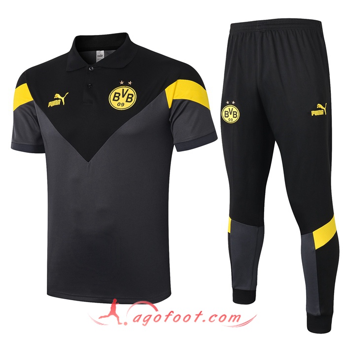 / Ensemble Polo Dortmund BVB + Pantalon Noir Gris 20/21