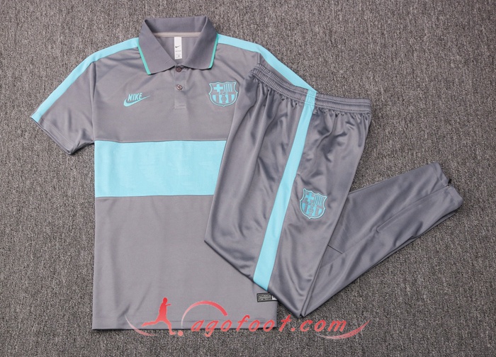 Ensemble Polo FC Barcelone + Pantalon Gris Bleu 20/21