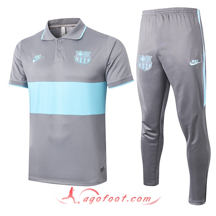 Ensemble Polo FC Barcelone + Pantalon Gris Vert 20/21