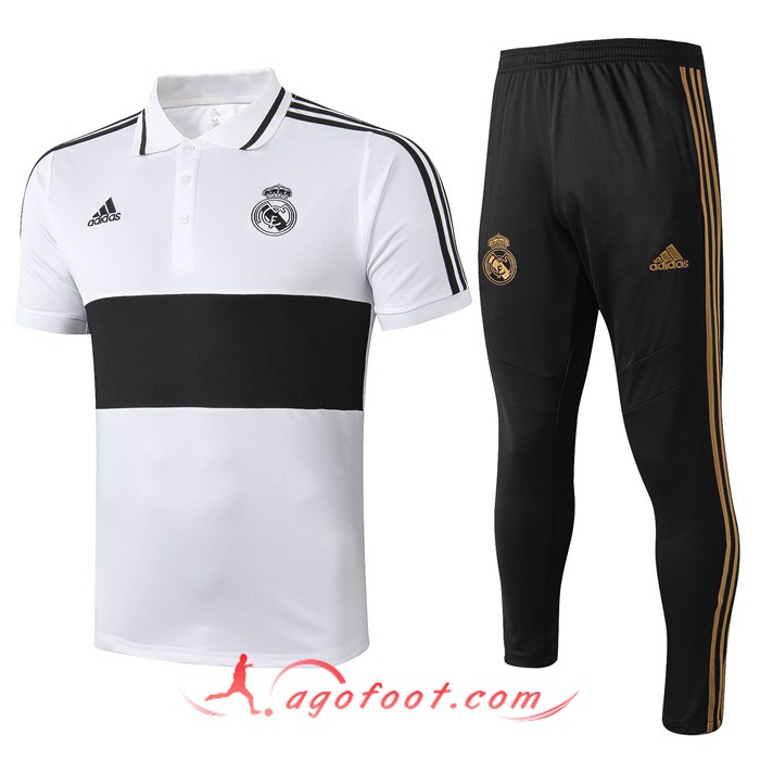 Ensemble Polo Real Madrid + Pantalon Noir Blanc 19/20