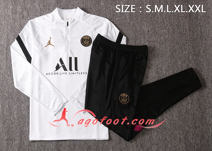Ensemble Survetement de Foot Jordan PSG Blanc 20/21