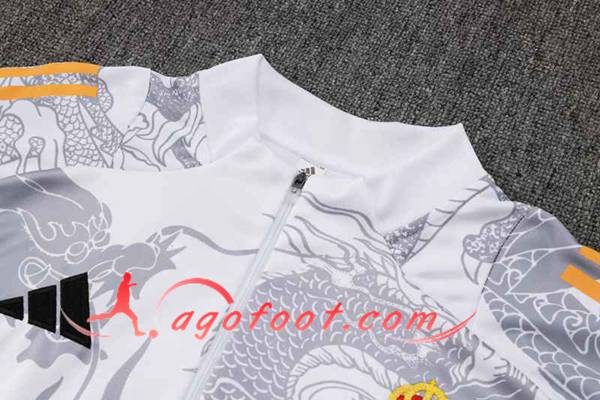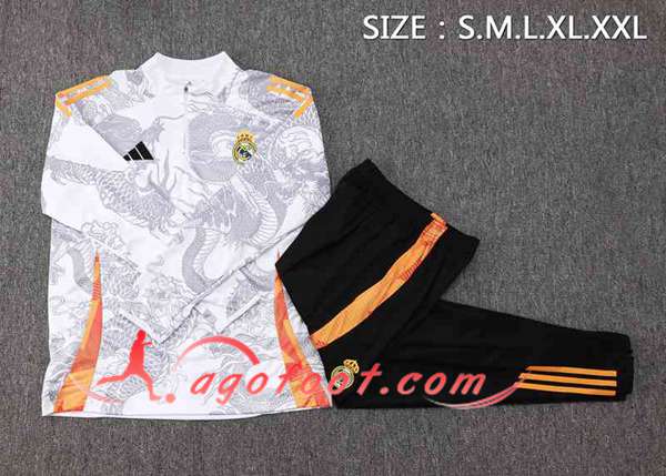 Ensemble Survetement de Foot Real Madrid Blanc/Gris 2024/2025 -02