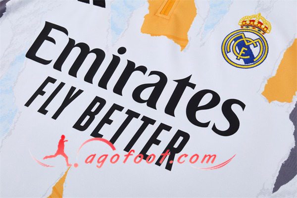 Ensemble Survetement de Foot Real Madrid Blanc/Jaune/Gris 2025/2026