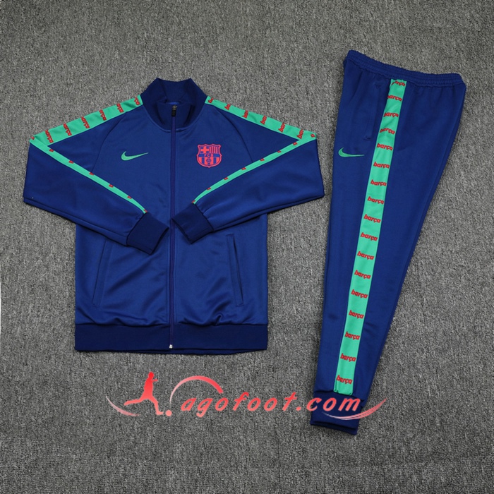 Ensemble Survetement de Foot Veste Foot FC Barcelone Bleu/Vert 2024/2025