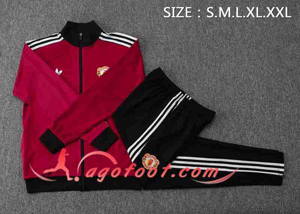 Ensemble Survetement de Foot Veste Foot Manchester United Rouge/Noir 2025/2026