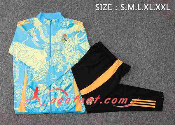 Ensemble Survetement de Foot Veste Foot Real Madrid Bleu/Jaune 2024/2025 -02
