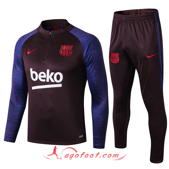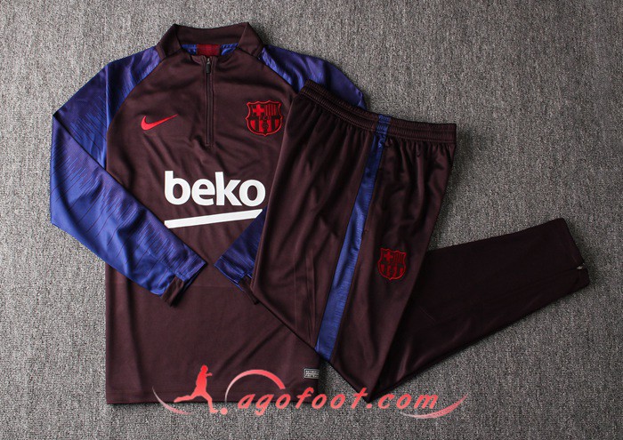 Ensemble Survetement Foot FC Barcelone Pourpre Bleu 19/20