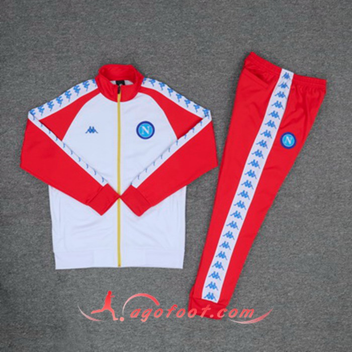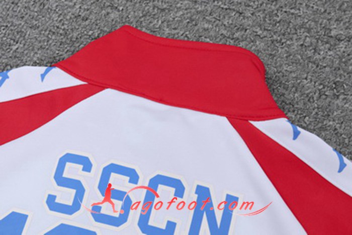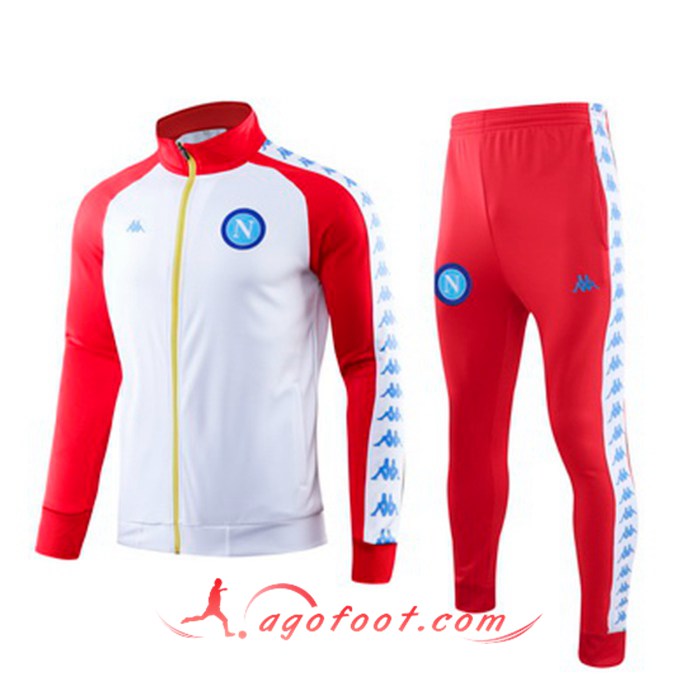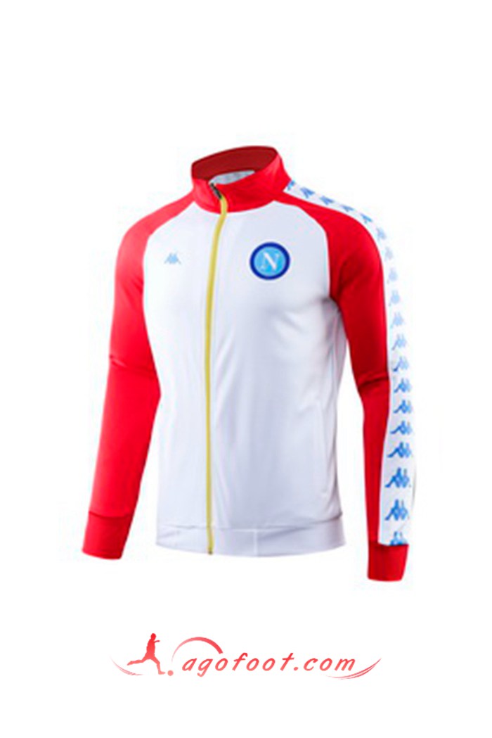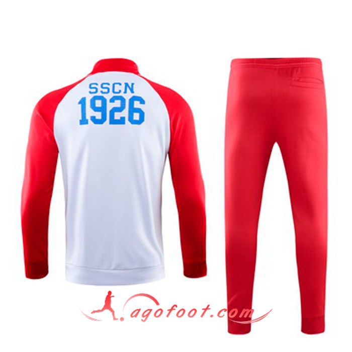 Ensemble Survetement Foot - Veste SSC Naples Blanc Rouge Col haut 19/20