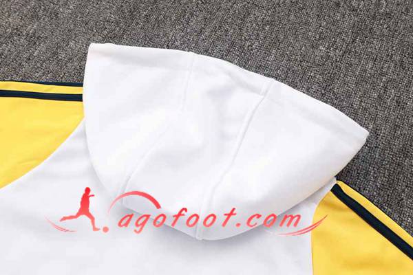 / Ensemble Survetement Veste A Capuche Coupe-Vent Real Madrid Blanc/Jaune/Bleu 2024/2025