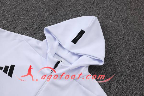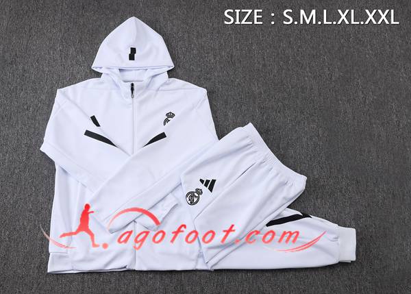 Ensemble Survetement Veste A Capuche Coupe-Vent Real Madrid Blanc/Noir 2025/2026