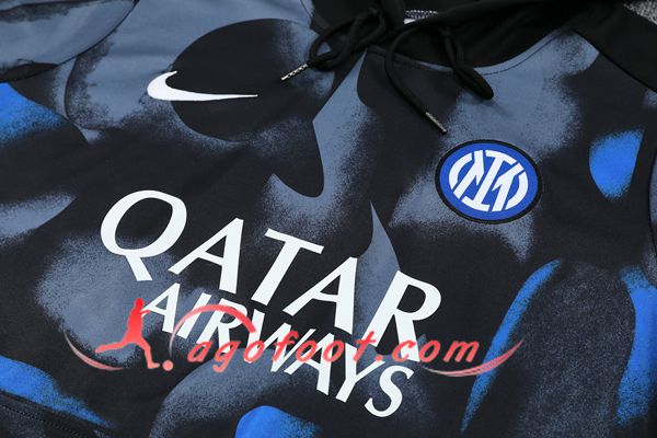 Ensemble Veste A Capuche Survetement de Foot Inter Milan Noir/Bleu/Gris 2024/2025