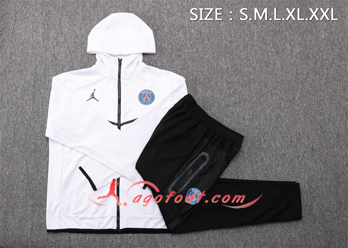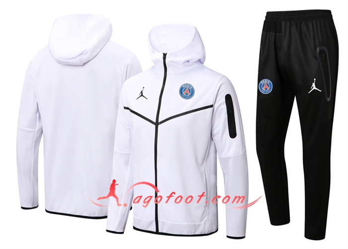 Ensemble Veste A Capuche Survetement - Veste Jordan PSG Blanc 20/21